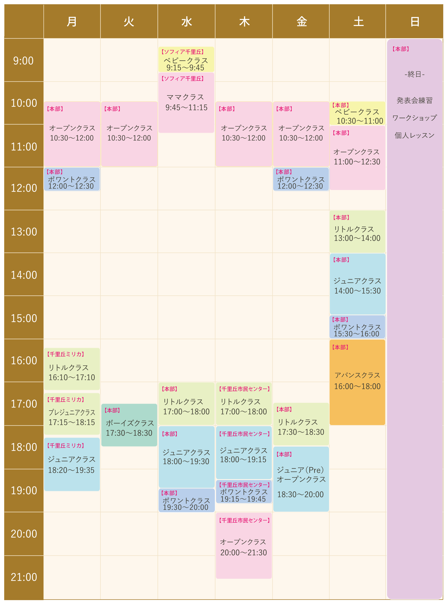 ※大人クラスは、現在、ビューティークラスとオープンクラスにわけております。 2月からは、両クラス、まとめてオープンクラスに名前変更致します。